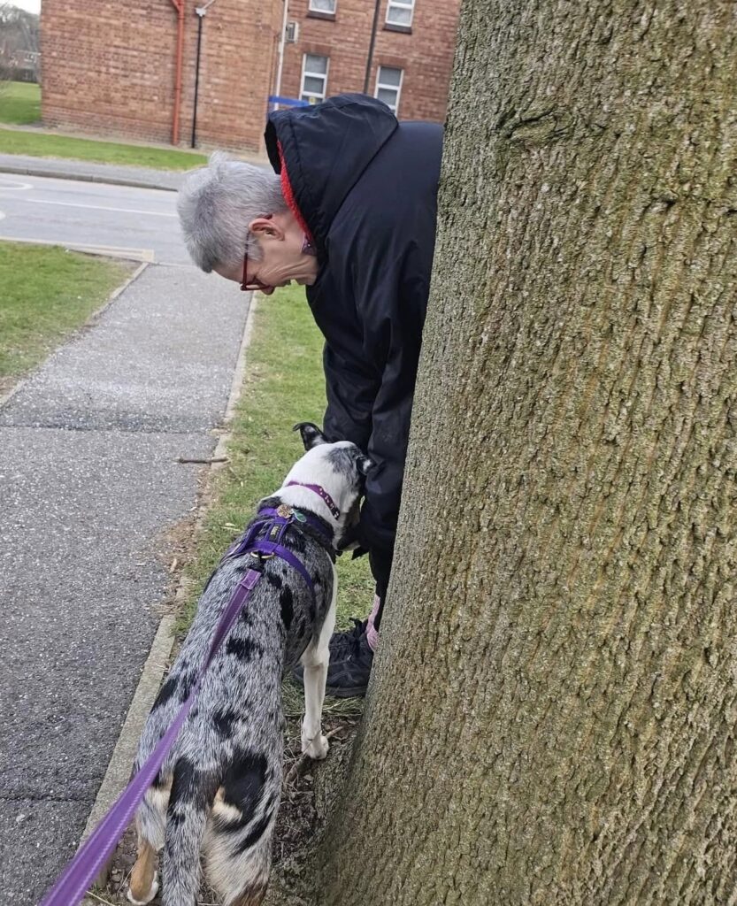Lovely day spent playing hide and seek with great friends and their dogs! Daisy did great but we still need to find the right harness that doesn’t impinge on her poorly neck, so only one trail for her this time. Ása was on fire, she’s really getting the hang of this now & I am loving watching her enjoying herself so much – can’t wait to see what she does next session. Elaine’s Hope and Obi and Andrea’s Dolly had brilliant sessions too, what a fab afternoon!